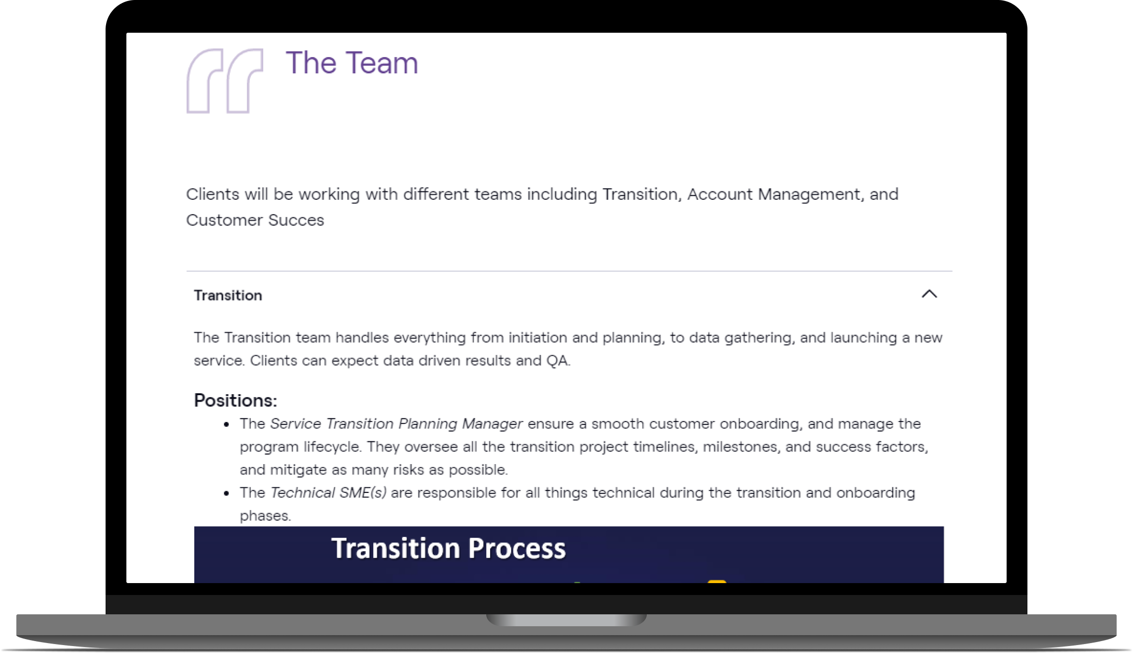 Explore more information about team members and processes through accordions, resulting in seamless communication and shorter delays